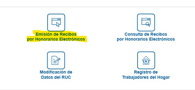 - Dirígete al lado inferior izquierdo: y selecciona la opción «Emisión de Recibos por Honorarios Electrónicos».